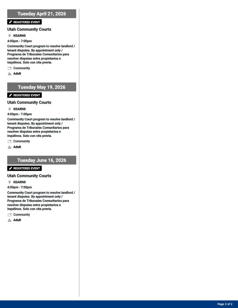 | Utah Legal Clinics | Legal clinics give general legal information and brief legal advice. |